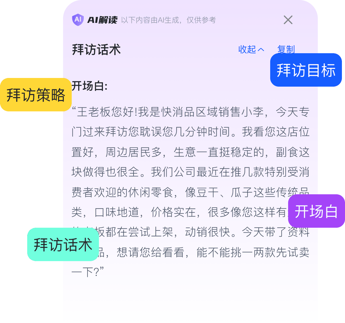 根据客户画像,智能生成沟通话术,生成破冰与成交策略,句句说到客户心坎里