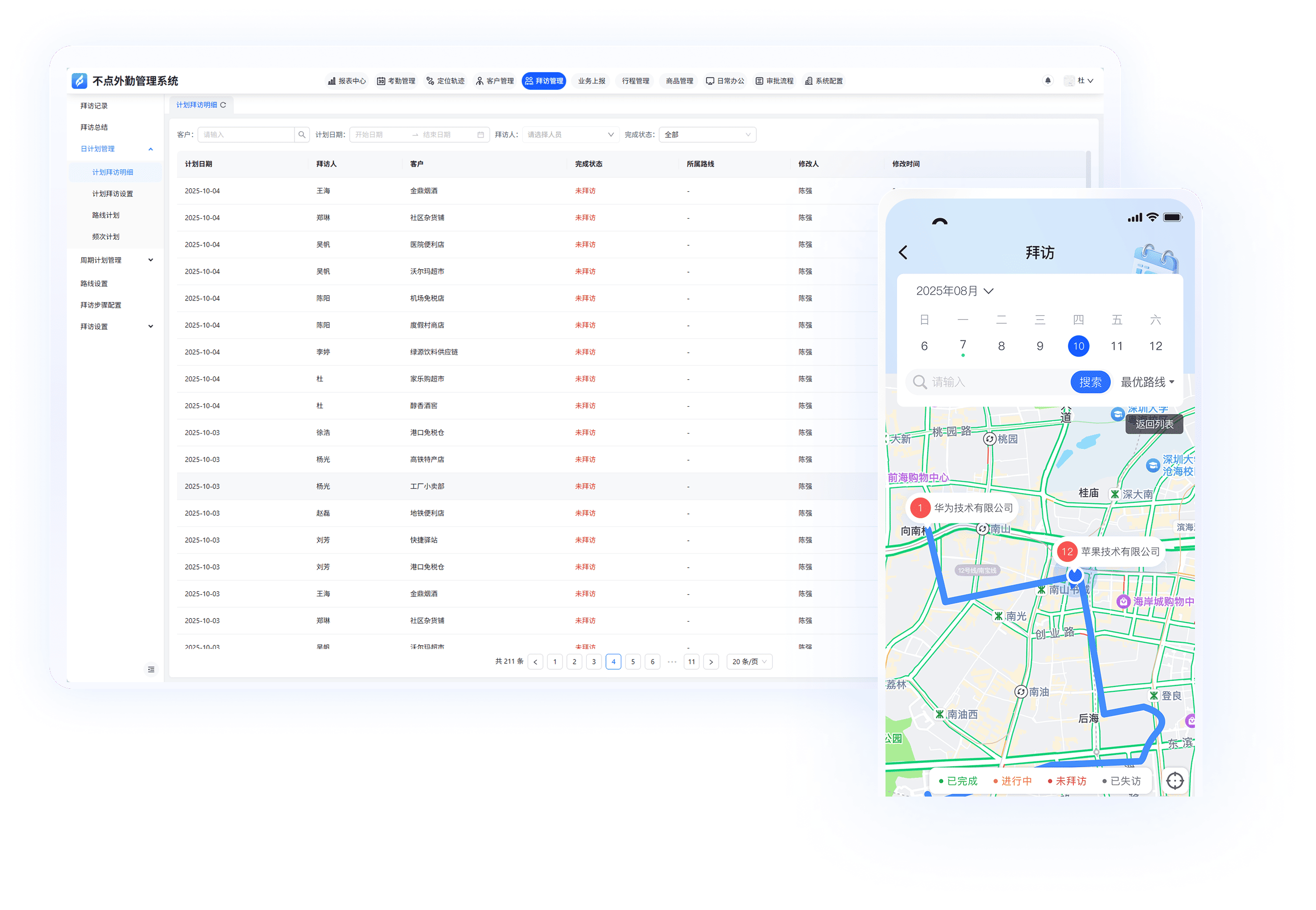 智能规划拜访计划+路线,规范拜访流程,质+量翻倍