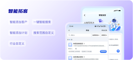 实时依据不同定位自动搜索附近潜客户,一键添加/拜访,降低拓客成本